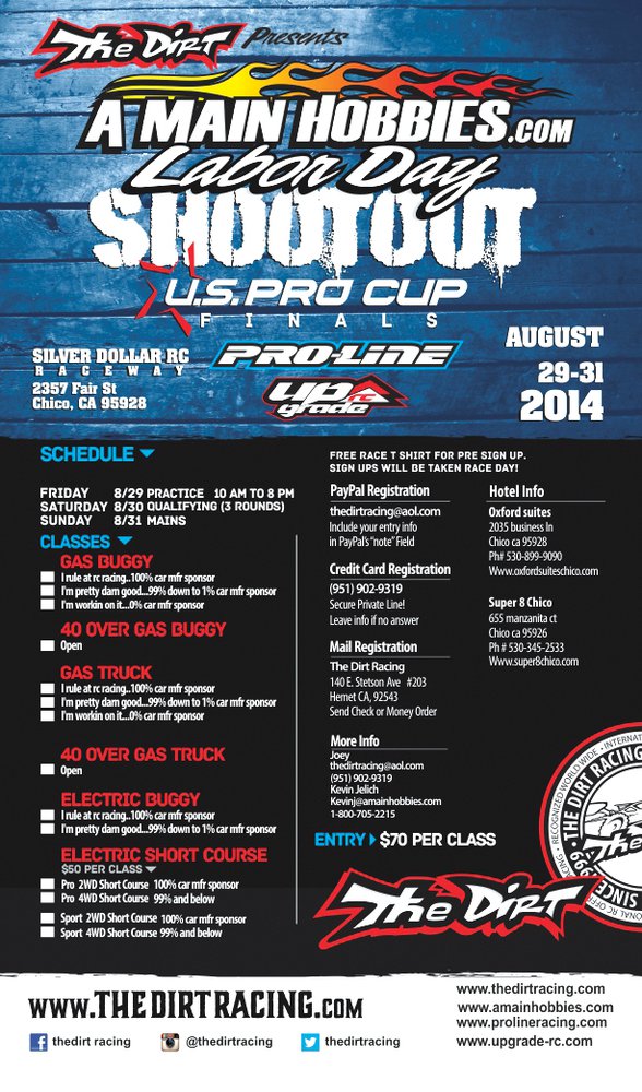 A Main Hobbies and The Dirt Racing have teamed up to host the final round of the 2014 U.S. Pro Cup at Silver Dollar RC Raceway in Chico, CA on August 29-31.