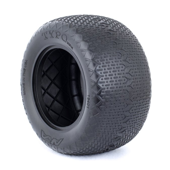 It's finally here! The first release in the AKA 1:10 stadium truck line is the Typo. The Typo is a very low tread pattern that has been optimized for hard-packed indoor tracks and low dust, grooved outdoor tracks. They are available in AKA's race proven Clay and Super Soft Compounds. Each pair come fitted with Red (soft) inserts. As with all AKA tires, designed, tested, and proudly made in the USA.