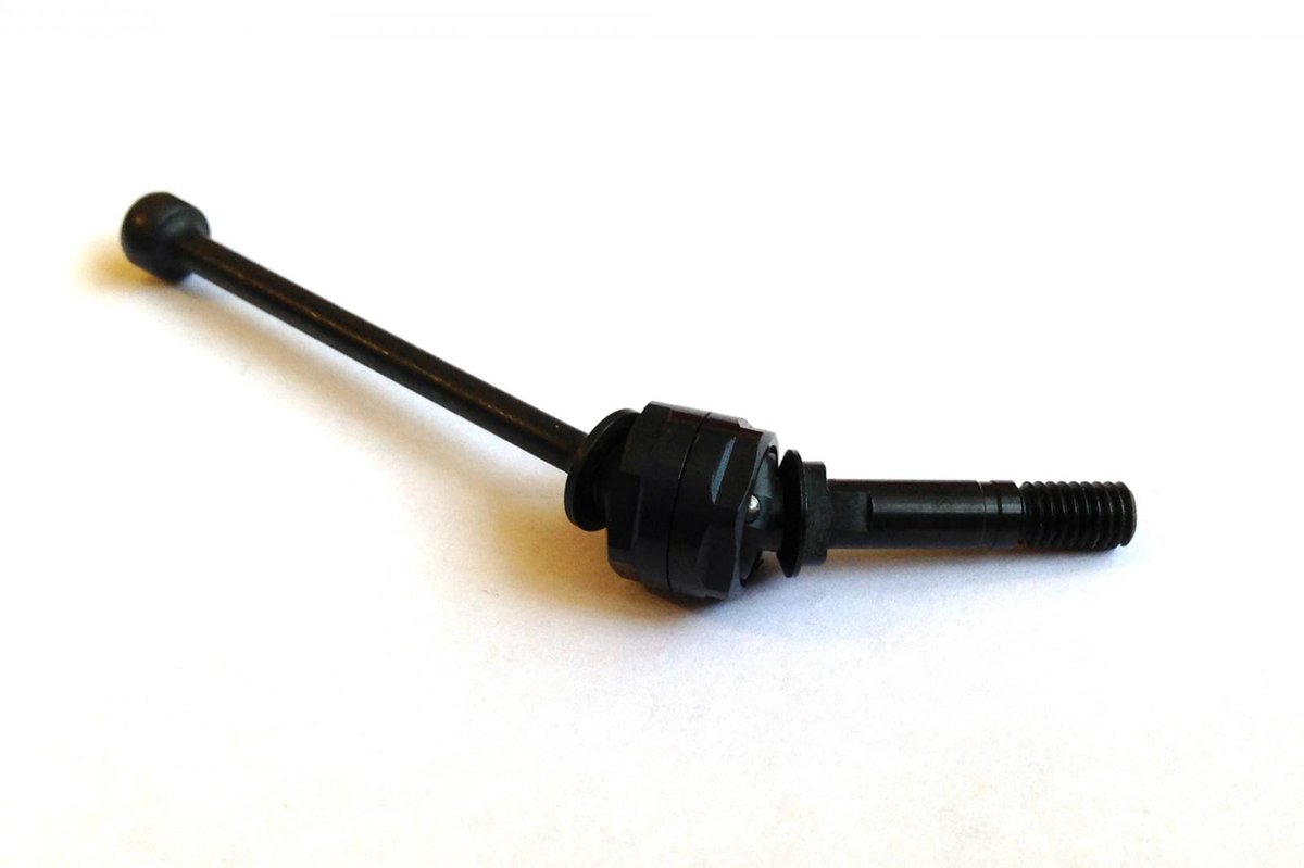 Awesomatix now has double cardan joint driveshafts for the A700 touring car, similar to double-jointed axles from other manufacturers but with several different features. Awesomatix says the new shafts are easier to assemble than the standard units, with two threaded pieces holding the unit together, and last at least three times longer than the driveshafts they replace. Along with reduced backlash, improved precision, and better concentricity, the driveshafts can be tuned to optimize “chatter” (or angular speed fluctuation inconsistency) for track conditions by replacing the shifted slot pairs of universal rings.