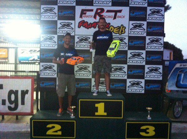 After 3 final rounds I won the first 2 legs of the A' main. Also I am proud of my team with Nikitas Niotis in second and Dionisis Zogogiannis in third place again with XRAY T4. 1,2,3 for XRAY Cars.