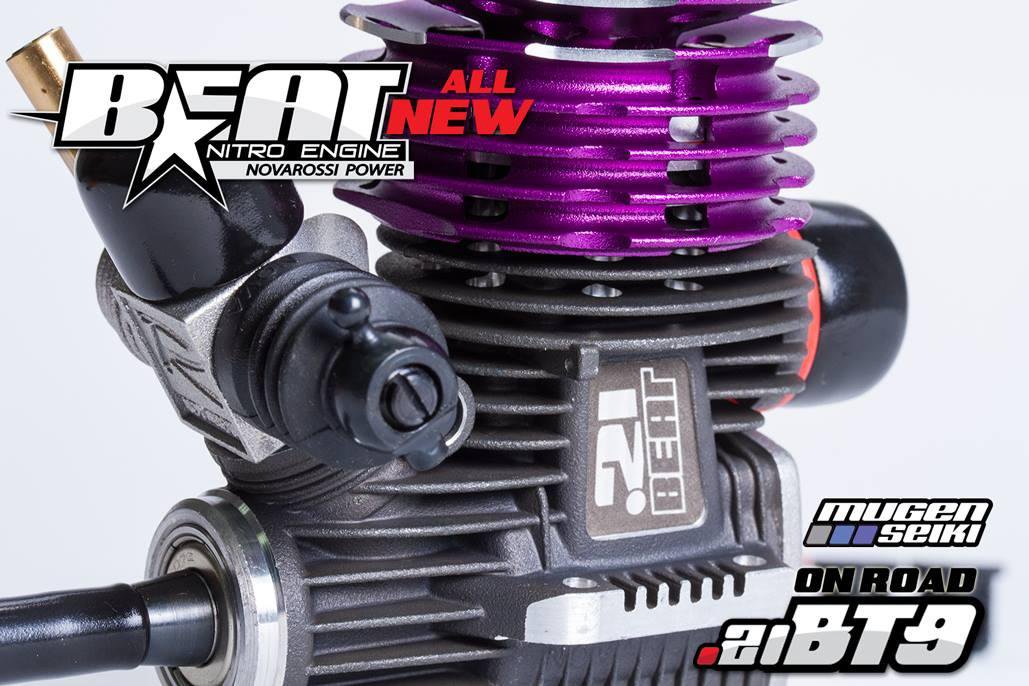 Titled under Mugen Seiki's "Beat" line of engines, produced by Novarossi, the new BT9 .21 engine is aimed at the upper echelon of 1/8-scale on-road racing. The engine features a ceramic rear bearing, 9-port sleeve, and turbo cut crankshaft, and is now available in the U.S.