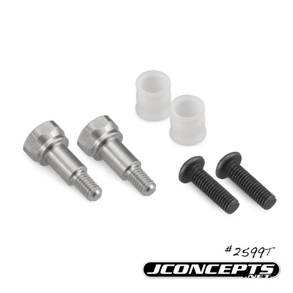 Replacement Delrin pivot bushings are available for drivers looking to freshen up their vehicles who are using the JConcepts Titanium Stand-offs. The precision machined bushings offer several benefits over conventional parts and are offered four pieces per package. Please note, the asymmetrical design features a taller shoulder on one side which should be positioned toward the shock tower position on the vehicle. This taller shoulder helps maintain the shock in the correct position without falling back on to the stand-off itself.