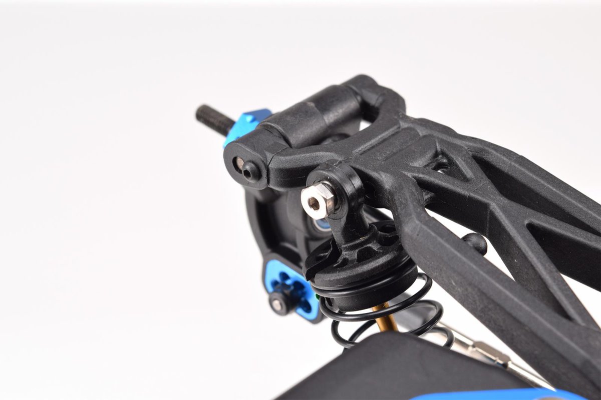 Revolution Design Racing Products have introduced the B64 Titanium Lower Shock Screw Set that includes four lower shock mount screws made from high-quality titanium. The fasteners do away with the standard steel screws and they are of a shouldered design that only has threaded sections where they are needed, while areas to which the lower shock eyelet bushings attach are of a plain design for improved durability. The screw heads are also unique in the way that they feature dual 2mm and 5.5mm hex sections that allow to use 2mm hex or 5.5mm nut drivers to fasten or loosen the screws. Included in the set are two front and two rear shock mounting screws.
