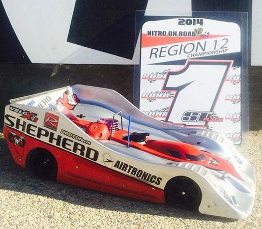 On September 14th, Team Shepherd and Airtronics driver Michael Palazzola drove his Shepherd Micro Racing Nitro 1/8 scale car to win the hotly contested Region 12 nitro 1/8 scale Onroad Regionals held at the Greater Los Angeles Radio Control Racing Club's (G.L.A.R.C.R.C.) home track in Gardena California. As one of only two Team Shepherd factory drivers in the United States, Michael's win is a huge score for the Shepherd Micro Racing team over more well known brands.