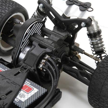 The motor location is 12mm closer to the diff gear than on the 2.0. This increases the rear weight bias, providing better rear grip on exit, more entry steering and a buggy that, overall, is easier to drive. The new 3-gear transmission decreases chassis roll, greatly improving the vehicle's stability, consistency and braking. A 4-gear transmission is available separately for lower-grip tracks and different driving styles.