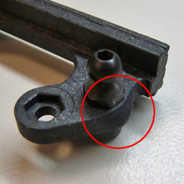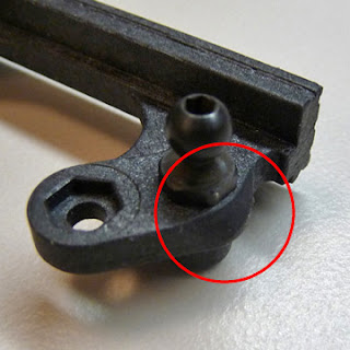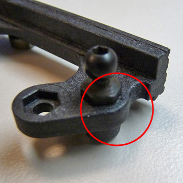 As we continue to learn more about the 22 SCT from our consumers and team drivers, this next tech tip is used in conjunction with the ball cup modification posted earlier to improve the recent issue of the steering tie rod popping off. We are currently in the process of updating the steering rack, but in the meantime this slight modification can be quickly accomplished in a few minutes. All you need to do is chamfer the outside edges of the steering rack where the ball studs (left & right) are installed to allow the steering tie rods to reach maximum angle without interfering with the steering rack. This can be done using a file or a Dremel (carefully!) as shown in the pictures below.