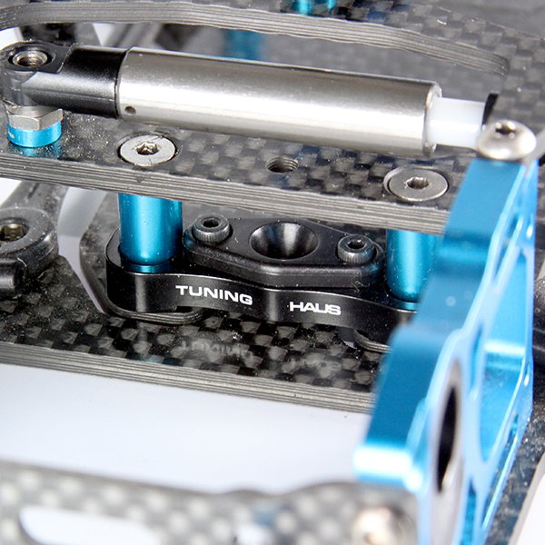 Tuning Haus delivers a durable and precision machined aluminum version of the venerable Tamiya plastic pivot, used on various F104v2 variants as well as the TRF101. Designed for use with Tamiya plastic upper pivot, cap screws, and pivot ball. A light coating of silicone fluid on the pivot recess during final assembly will result in a silky smooth rear suspension movement. No more worries about durability after hard impacts.