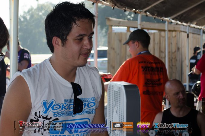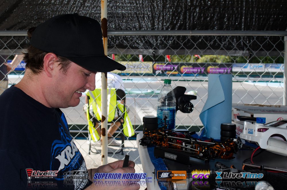 British driver Olly Jeffries said “It was a lot better that time,” despite the heat. “Everyone else went slower and I went faster,” he said. The XRAY team driver commented that the track design was like nothing he’s ever seen before - outdoor tracks in Europe have curbs, rather than the boards like an indoor track, and said, “your brain tells you not to drive on the curbs, but it’s just paint - so you have to drive right across it.” Olly fitted the Active Rear Steering to his T4 2015 for that round, and will try reduced front droop and less rear toe-in.
